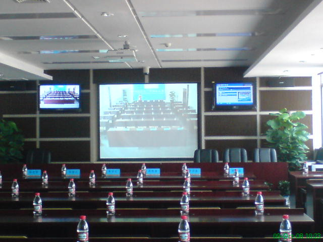 該項(xiàng)目采用國(guó)際知名品牌的Orion/韓國(guó)等離子拼接大屏、高清LCD顯示器(三星)、高清投影機(jī)(EPSON)、調(diào)音臺(tái)(Soundcraft)、專業(yè)功放(CROWN)、麥克風(fēng)(AKG)、音箱(JBL)、專業(yè)混音器(SHURE)、CRESTORN中央控制系統(tǒng)、CREATOR信號(hào)切換系統(tǒng)、Polycom視頻會(huì)議系統(tǒng)等設(shè)備。