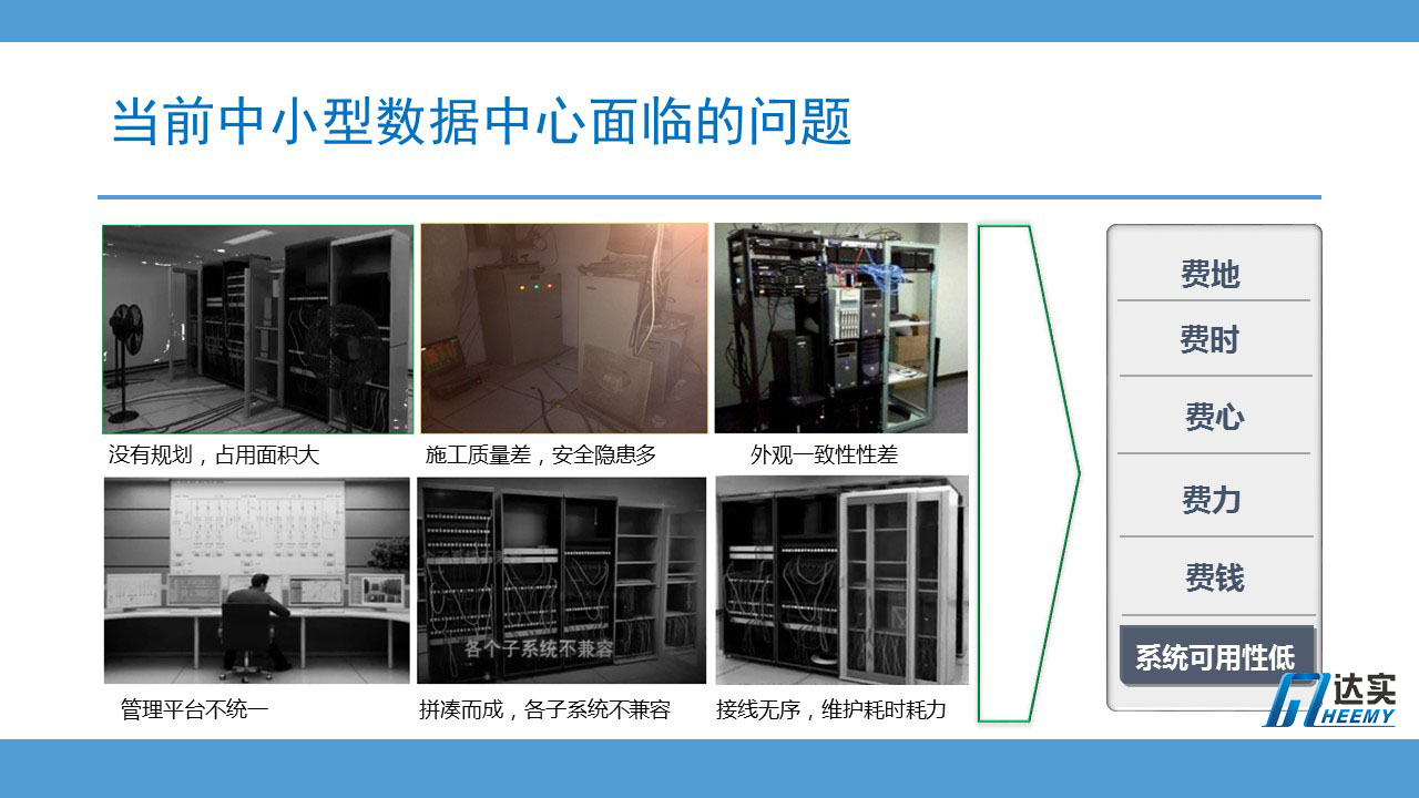 這幾張圖片是典型的中小型數(shù)據(jù)中心的現(xiàn)狀,主要面臨的問題: